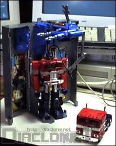 ■コンボイロボ。変型システムはカーロボット史上最もシンプルな部類に入るほうだろう。基本となる車両形態がシンプルな箱型であり、通常のカーロボよりロボット状態でのプロポーションのまとまりがよい。