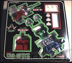 ダイアクロン隊を倒せ! 地球のエネルギーを全て奪いつくすのだ。将軍インガムの指令でワルダー星の科学力を結集した大型戦闘ロボ「ワルダロス」は、その強力な武器で次々と都市を破壊する。さあ、次はダイアクロン本部だ!! (セット箱マニュアル)ワルダー軍団の科学力を結集して陸・海・空すべて戦闘に適応できるように設計された3機合体ロボ。頭部のデス・ガマは超金属も切断する力を持っている。 | ||||||||||||||